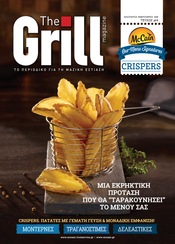 Κυκλοφόρησε σήμερα, το 14ο τεύχος του περιοδικού για τη μαζική εστίαση Grill, το πρώτο για το 2018. Το τεύχος περιέχει δύο αφιερώματα που αφορούν κάθε επιχειρηματία στον κλάδο της μαζικής εστίασης: α) αφιέρωμα σε  “Πίτες, Ψωμάκια κι Αρτοσκευάσματα για τη Μαζική Εστίαση” και β) “Σαρακοστιανά Προϊόντα”. Την κεντρική συνέντευξη του τεύχους δίνει ο Άρης Κάρεϋ, ο δυναμικός οικονομολόγος, πρώην χρηματιστής και νυν επιχειρηματίας του μπέργκερ ο οποίος αυτό το διάστημα αναπτύσσει την αλυσίδα Bullseye.
