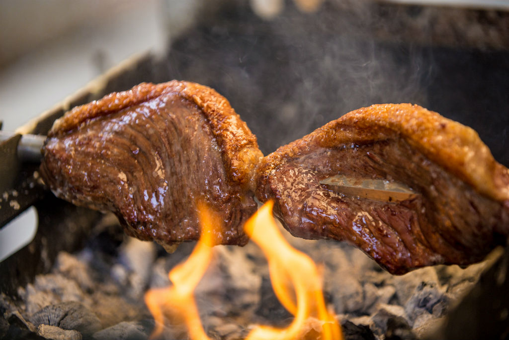 Picanha από μοσχάρι black angus Αμερικής, ψημένη assado σε περιστρεφόμενη σούβλα με κουβανέζικο κάρβουνο.