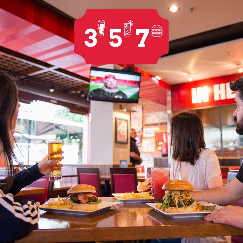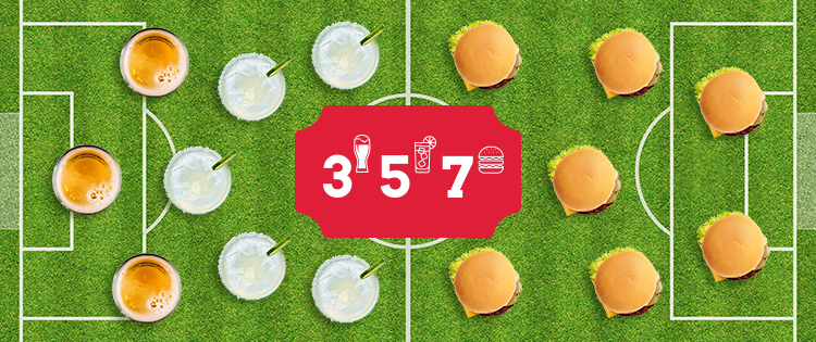 Τα εστιατόρια TGI Fridays προσφέρουν μια ακαταμάχητη ποδοσφαιρική πρόταση, η οποία θα βρίσκεται σε ισχύ μέχρι τον τελικό του Παγκοσμίου Κυπέλλου, την Κυριακή 15 Ιουλίου. Παίζουν γερά με το απόλυτο σύστημα επιτυχίας: 3-5-7. Δροσιστική Heineken Draught 400 ml ή Heineken Light στα 3 ευρώ ή μια Fridays Classic Margarita στα 5 ευρώ μαζί με ζουμερά, Handcrafted Burgers στα 7 ευρώ.