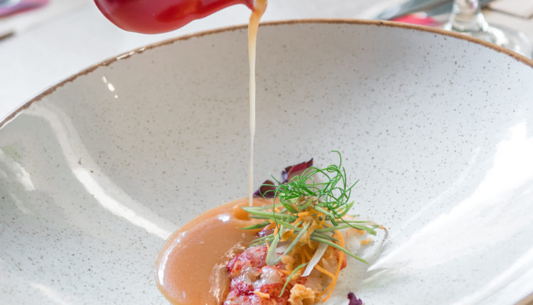 Ceviche Αστακού / κονσομέ θαλασσινών / τραγανά λαχανικά / crispy χοιρινό