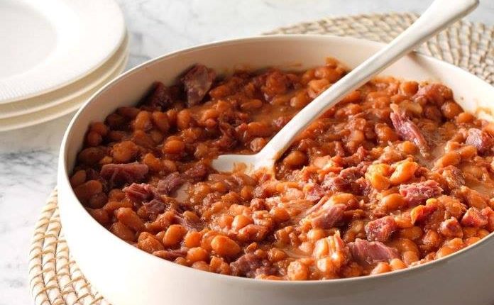 [2] Σε μεσαία φωτιά, μαγειρέψτε τα φασόλια, το ζαμπόν, το νερό, το κρεμμύδι, ένα κουταλάκι του γλυκού σκόνη σκόρδου και ένα κουταλάκι του γλυκού σκόνη κρεμμυδιού. Μαγειρέψτε σε σκεπασμένο τηγάνι, σε χαμηλή φωτιά, μέχρι τα φασόλια είναι γίνουν τρυφερά, για 8-10 λεπτά.