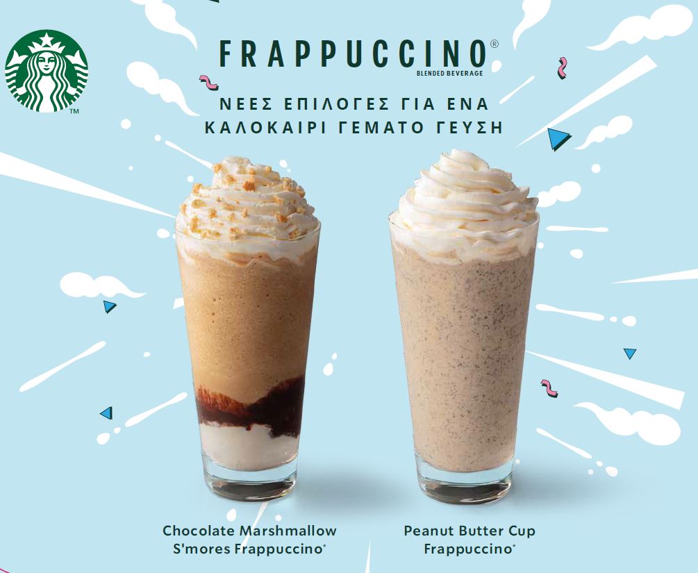 Φέτος, η οικογένεια των Frappuccino blended ροφημάτων εμπλουτίστηκε με δύο νέα μέλη: Το απολαυστικό Chocolate Marshmallow S’mores Frappuccino και το νέο Peanut Cup Butter Frappuccino, θα αποτελέσουν την καλύτερη επιλογή για ένα μεγάλο περίπατο στη πόλη ή για την απογεματινή σας βόλτα δίπλα στη θάλασσα! Το μόνο που χρειάζεται να κάνετε, είναι να επισκεφτείτε ένα κατάστημα Starbucks και να ζητήσετε από τον δικό σας barista να σας ετοιμάσει το αγαπημένο σας ρόφημα.