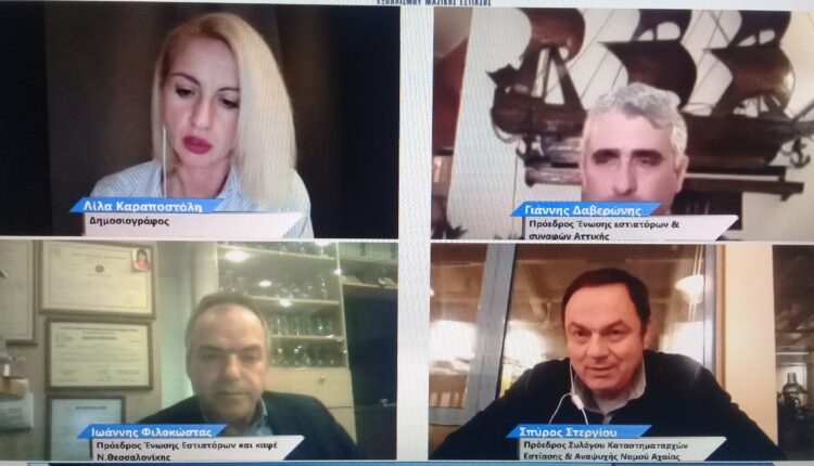 Ιδιαίτερα σκεπτικιστής ήταν στην τοποθέτησή του ο ο Πρόεδρος της Ένωσης Εστιατόρων &  Καφέ Ν. Θεσσαλονίκης Γιάννης Φιλοκώστας. Αυτό που χρειάζεται, σύμφωνα με τα όσα είπε, είναι άμεση ρευστότητα ενώ στάθηκε ιδιαίτερα στο τρίπτυχο ‘φόβος- καχυποψία- ανασφάλεια’, το οποίο  καλούνται να διαχειριστούν οι επαγγελματίες της εστίασης για να πείσουν τους πελάτες τους να επιστρέψουν στα καταστήματα. «Το επιδημιολογικό φορτίο στη Θεσσαλονίκη είναι ακόμα πολύ υψηλό, οι συνάδελφοι υποφέρουν κι αν θέλετε τη γνώμη μου δεν πιστεύω ότι θα ανοίξουμε ούτε τον Ιανουάριο. Πριν ένα μήνα ήμασταν πιο αισιόδοξοι, αλλά… ‘βγήκαμε ψεύτες’» είπε ο συνδικαλιστής από τη Θεσσαλονίκη