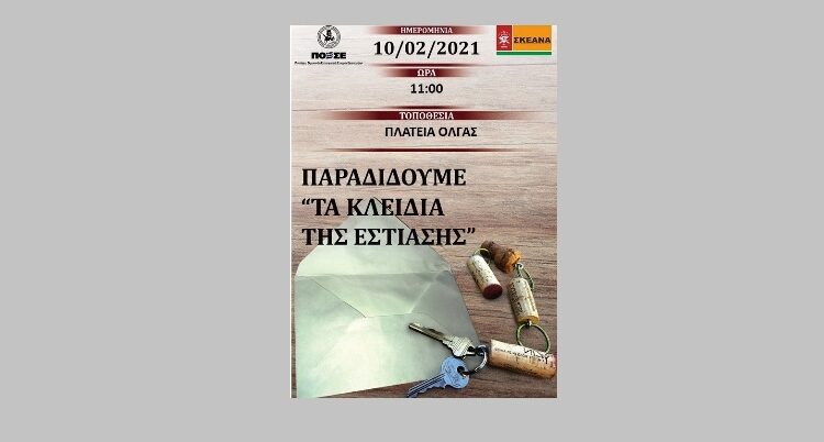 Σε ανακοίνωσή του ο ΣΚΕΑΝΑ ενημερώνει τα μέλη του οτι λόγω των έκτακτων περιοριστικών μέτρων που επιβλήθηκαν στην Αχαΐα, η προγραμματισμένη για τις 10/2/2021, πανελλήνια διαμαρτυρία, θα διεξαχθεί συμβολικά από το Δ.Σ., χωρίς ανοιχτή πρόσκληση κόσμου, διότι όπως πολλές φορές έχει τονιστεί η δημόσια υγεία προέχει και είναι το μέγιστο αγαθό που πρέπει όλοι να διαφυλάξουμε. Η συμβολική διαμαρτυρία- παράδοση των κλειδιών, θα διεξαχθεί, την Τετάρτη, 10/2/2021, στις 11:00 στην Πλατεία Όλγας.