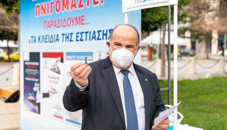 Στο κάλεσμα της δράσης της ΠΟΕΣΕ «Τα κλειδιά της εστίασης», ανταποκρίθηκαν οι επαγγελματίες του χώρου Εστίασης και συναφών επαγγελμάτων από τον ακριτικό Έβρο μέχρι την Κρήτη και από την Κέρκυρα μέχρι τη Ρόδο. Οι επαγγελματίες του Κλάδου προσήλθαν σε κατά τόπους σημεία σε όλη τη χώρα και με τη μαζική συμμετοχή τους με πόνο ψυχής παρέδωσαν τα κλειδιά των επιχειρήσεών τους, τους κόπους μιας ζωής.
