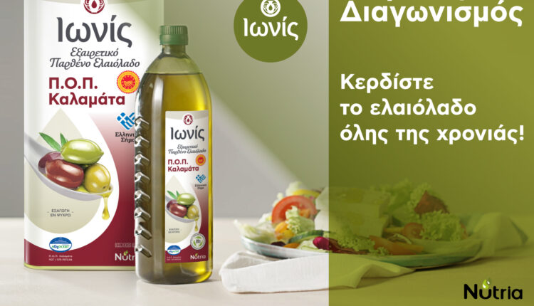Η ελαιουργική εταιρία NUTRIA σε συνεργασία με το ΑΘΗΝΟΡΑΜΑ προκηρύσσει διαγωνισμό και προσφέρει σε έξι τυχερούς από 16 λίτρα εξαιρετικό παρθένο ελαιόλαδο Ιωνίς Π.Ο.Π. Καλαμάτα.