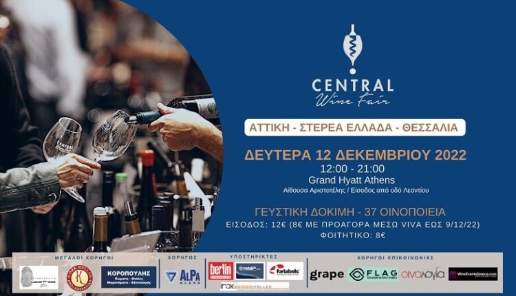 Με μεγάλη συμμετοχή οινοποιείων και πληθώρα κρασιών έρχεται η Central Wine Fair 2022, η οποία επιστρέφει σε εορταστική ατμόσφαιρα τη Δευτέρα 12 Δεκεμβρίου με εξαιρετική δυναμική.