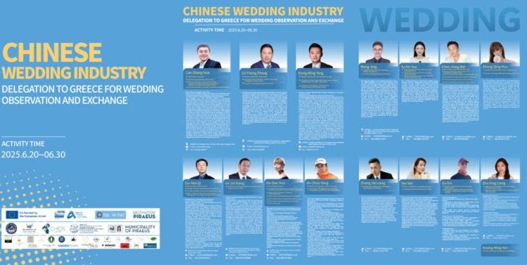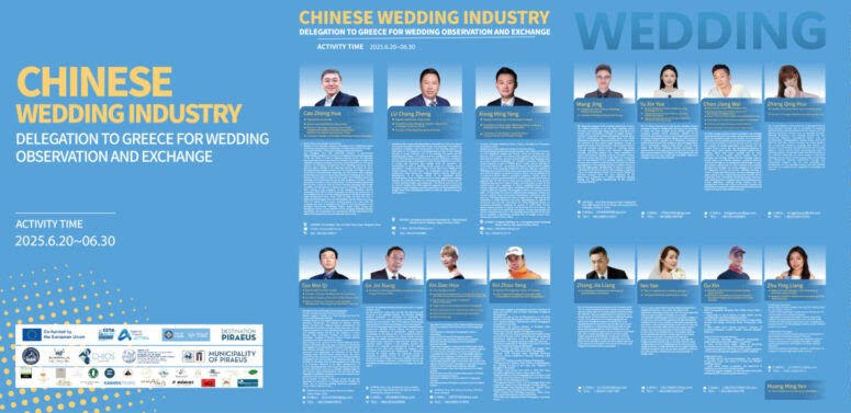 Η αποστολή στην Χίο αποτελείται από 16 μέλη, μεταξύ των οποίων βρίσκονται οι πρόεδροι των ενώσεων γάμου από τις επαρχίες Sichuan, Hunan, Hubei, Jiangsu, Yunnan καθώς και εκπρόσωποι από σημαντικές τουριστικές επιχειρήσεις, φωτογράφοι, βιντεογράφοι, makeup artists και τέσσερα ζευγάρια που συμμετέχουν σε γάμους – event και φωτογραφήσεις σε παραδοσιακά χωριά και τοποθεσίες ιδιαίτερου φυσικού κάλλους.